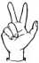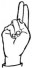 На ћирилици написано РУМЕНА РАДОЈИЧИЋ састоји се из 15 слова [?]. Исписано ћириличном једноручном азбуком за глувонеме: